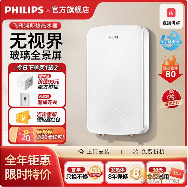 飛利浦即熱式電熱水器家用洗澡神器